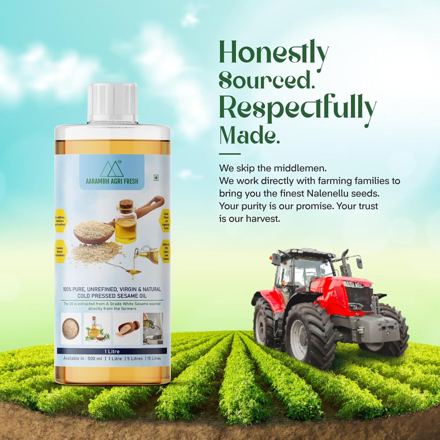 100% Pure Kachi Ghani Sesame Oil | Cold Pressed Unrefined | For Cooking, Skin, Hair & Traditional Massage
